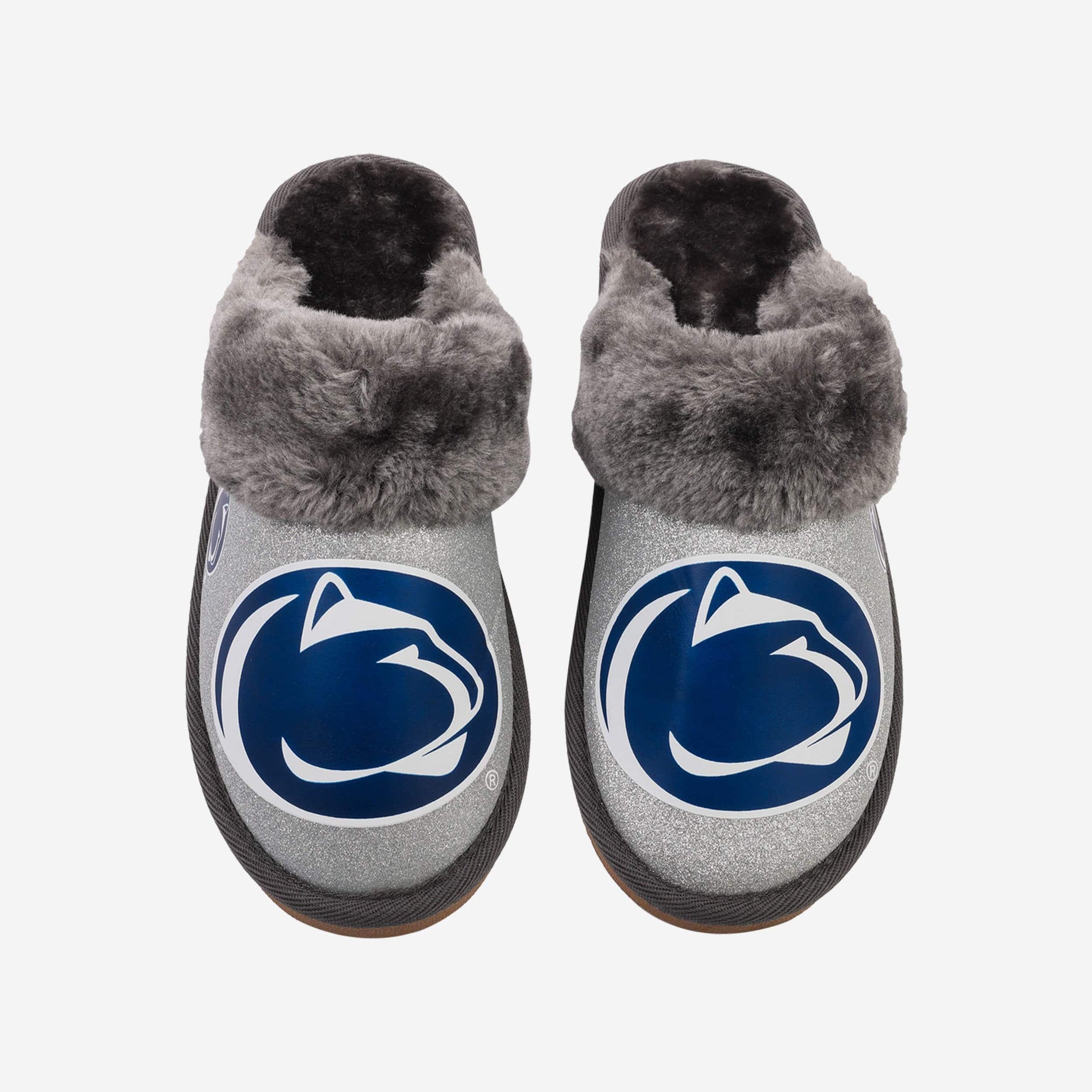 Penn State Nittany Lions Womens Glitter Open Back Fur Moccasin Slipper FOCO - FOCO.com