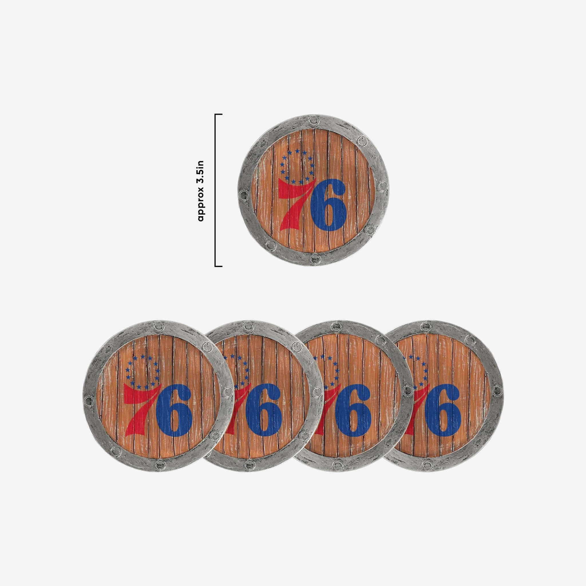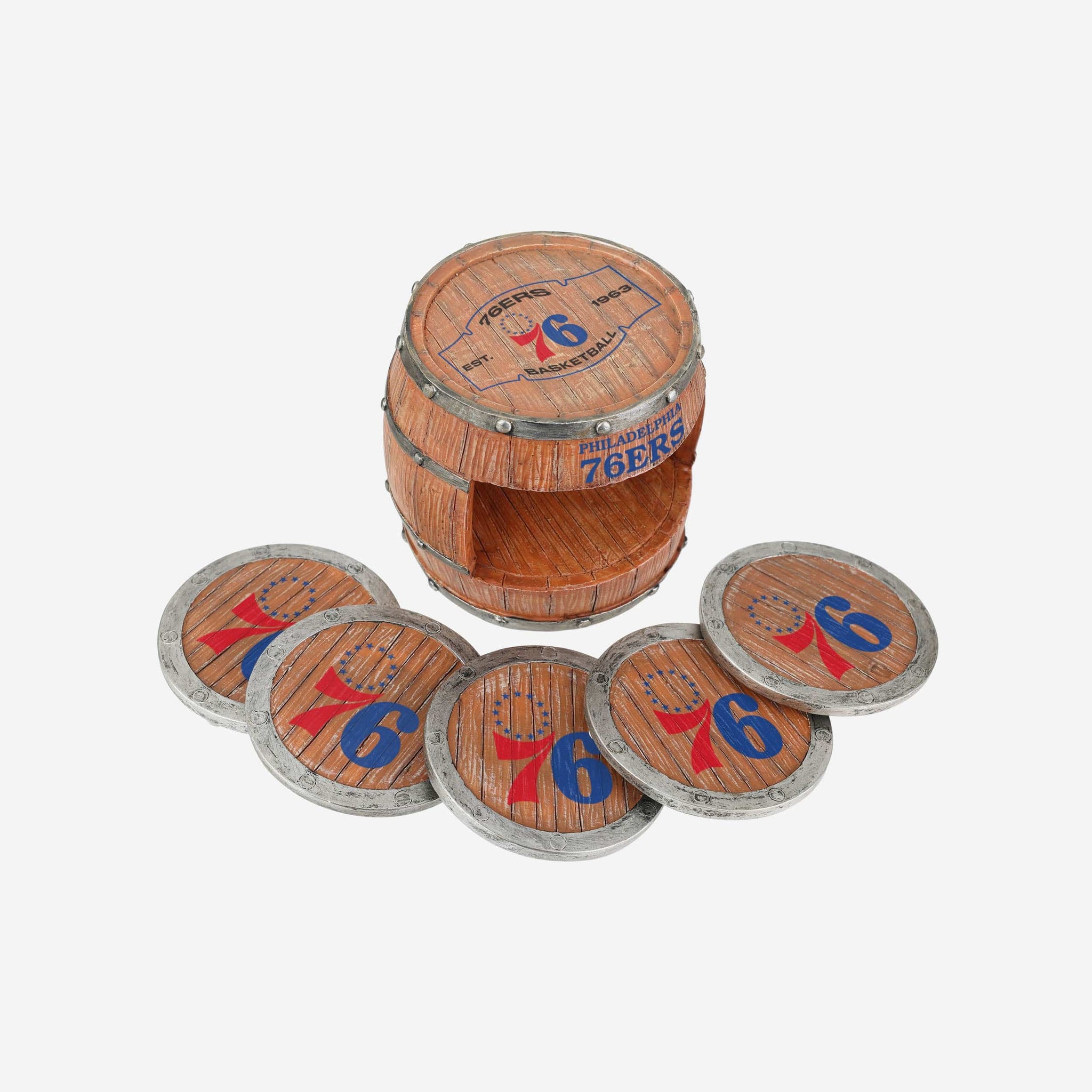 Championship rings? Yay! Unsightly rings on the coffee table? Boo! Break out the beverages worry-free and get ready for every watch party with this Philadelphia 76ers 5 Pack Barrel Coaster Set.