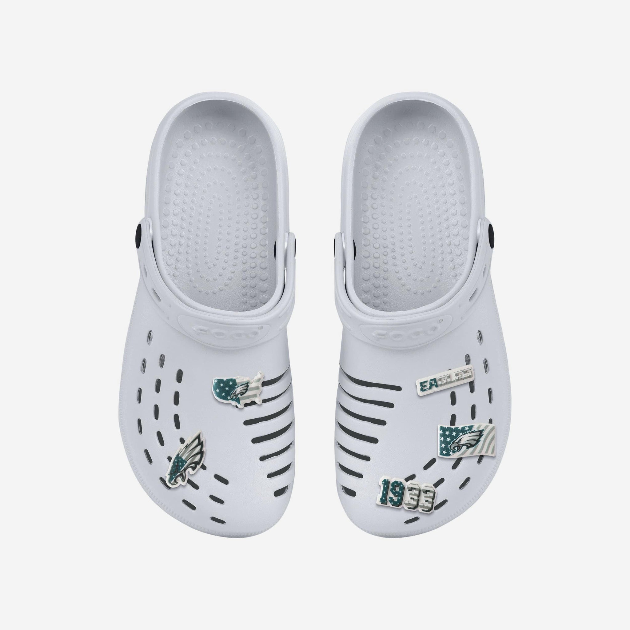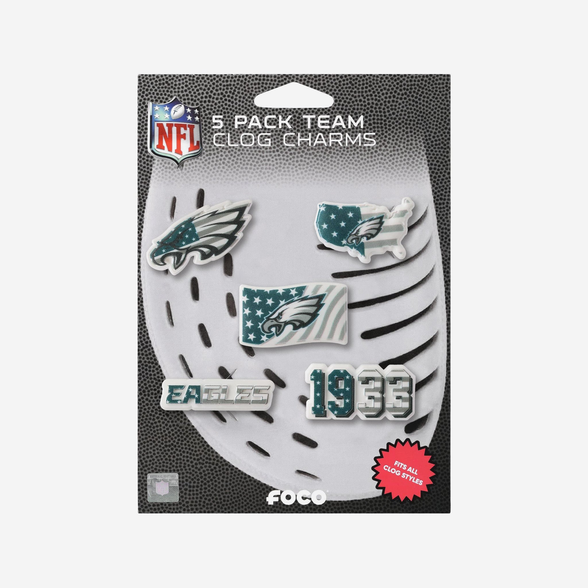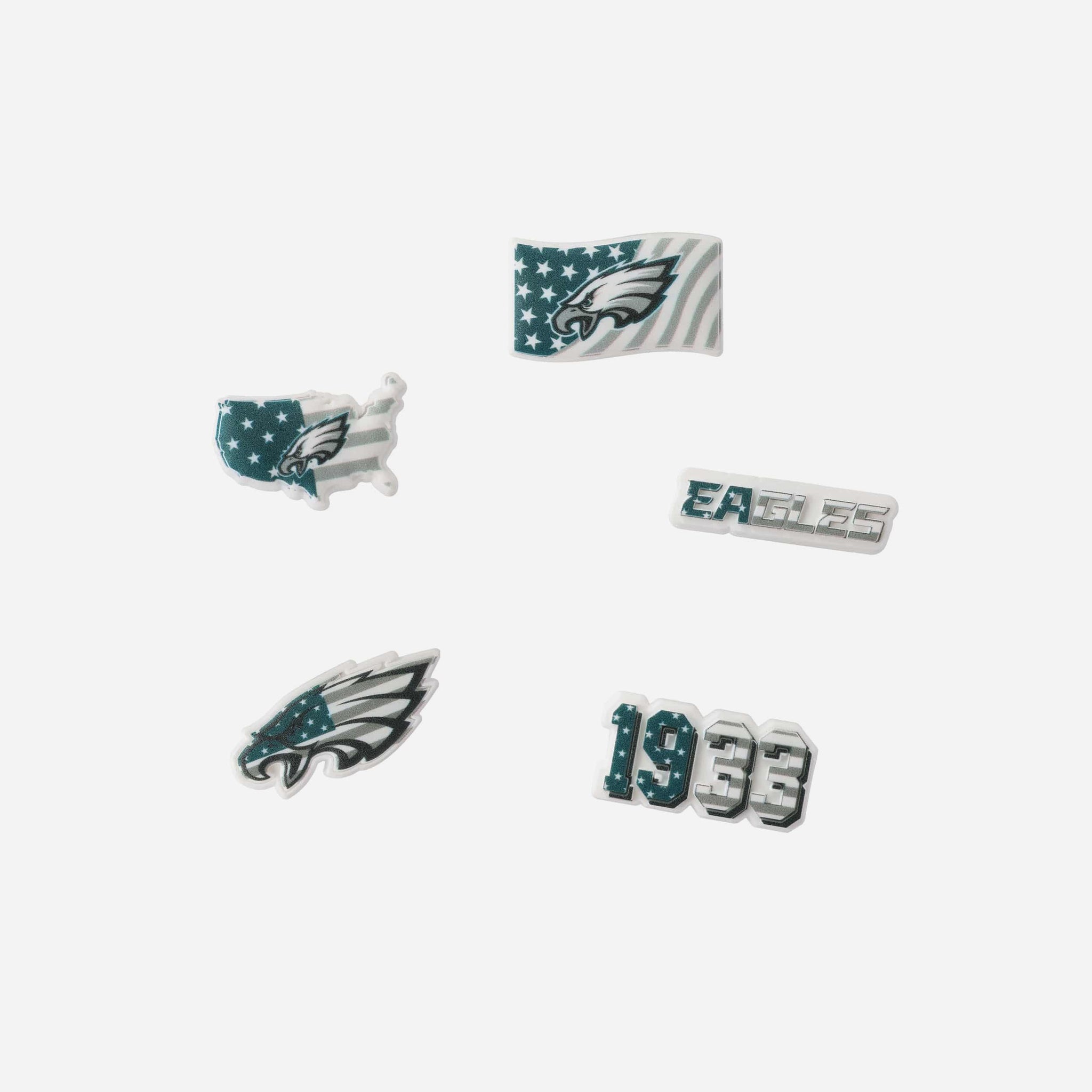 Add some star-spangled style to your footwear with these Philadelphia Eagles Americana 5 Pack Team Clog Charms. Featuring patriotic-inspired team designs, this five-piece set lets you customize your favorite clogs with bold graphics that bring together your love of country and team.