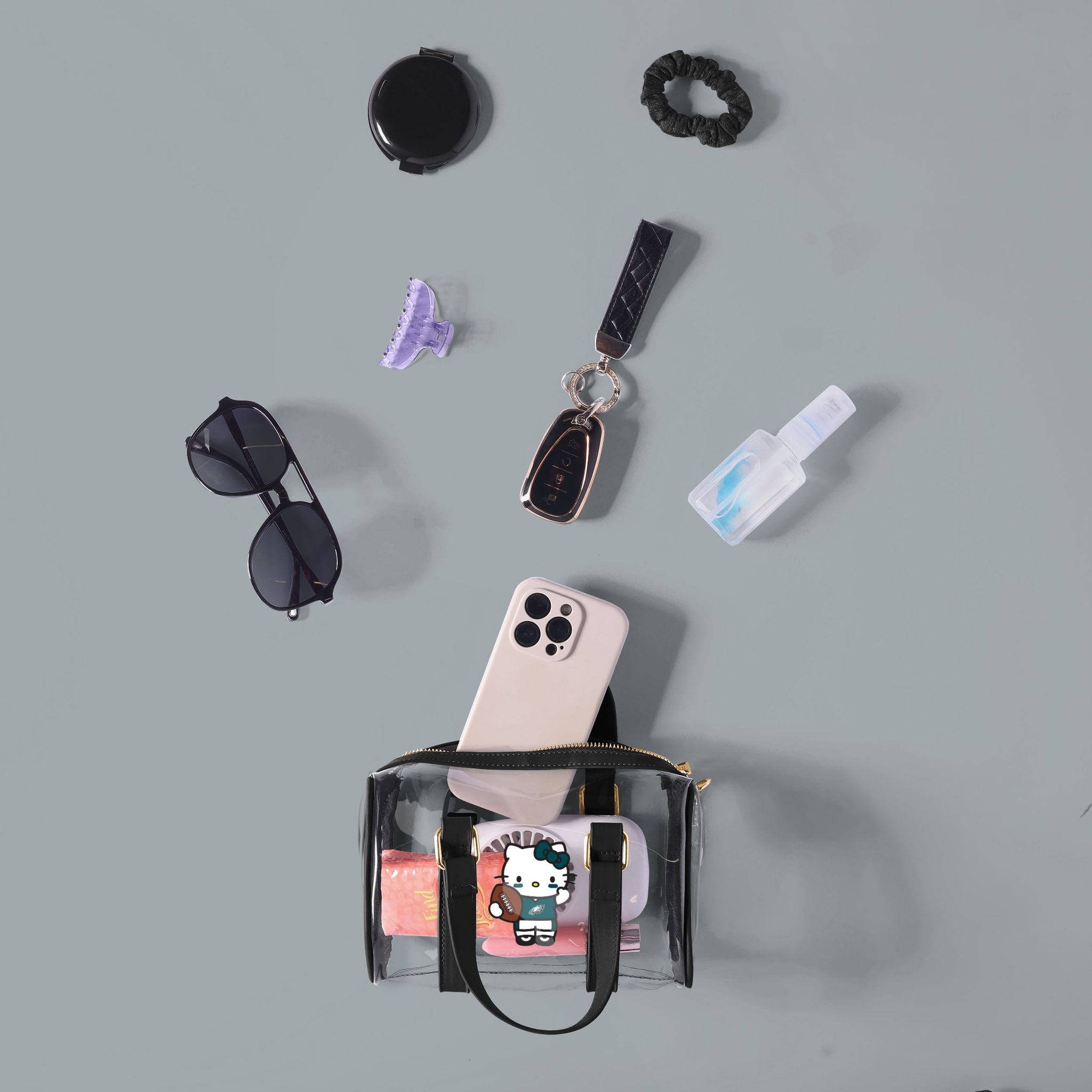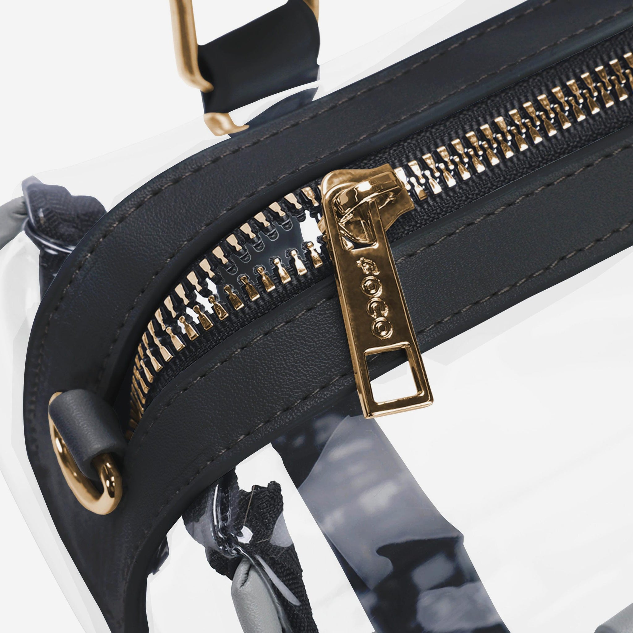 • Clear mini duffle barrel bag design that’s perfect for everyday style