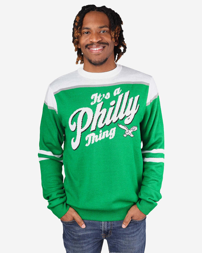 Style like this? It's a Philly Thing. Make your Philly fashion fly to a new peak with the Philadelphia Eagles It's a Philly Thing Sweater.