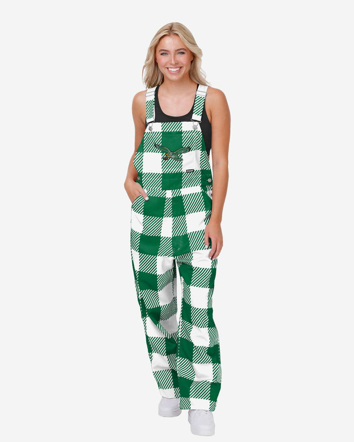 Philadelphia Eagles Kelly Green Womens Plaid Bib Overalls FOCO - FOCO.com