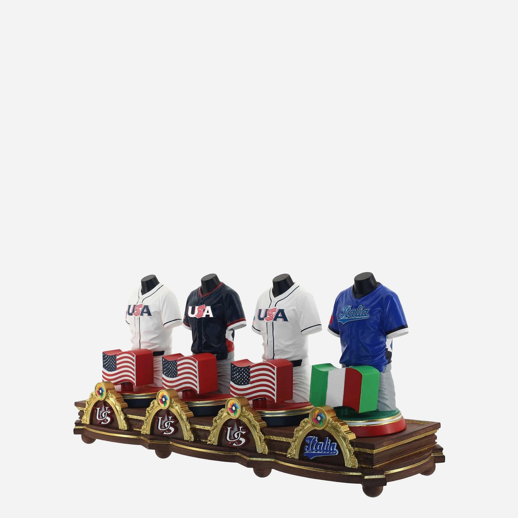- Country flag accents displayed on the front of each bust to highlight the nation each player represents