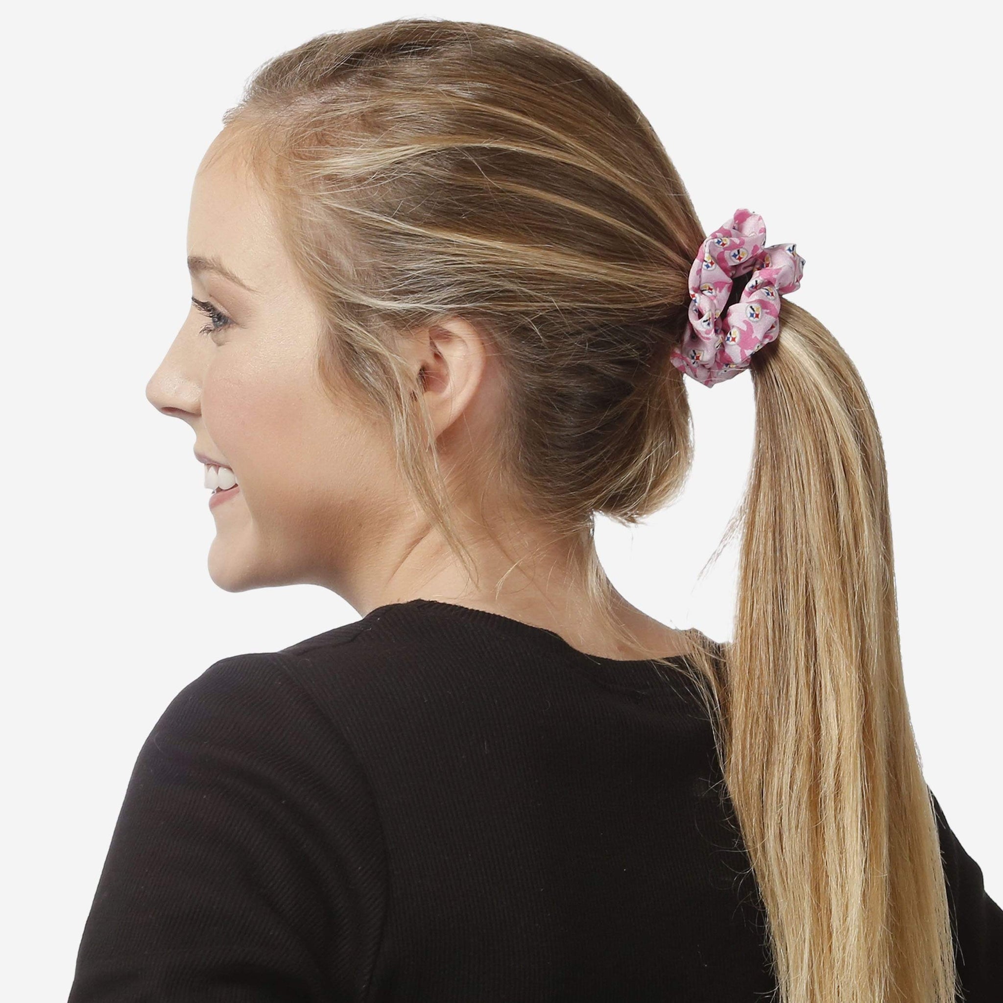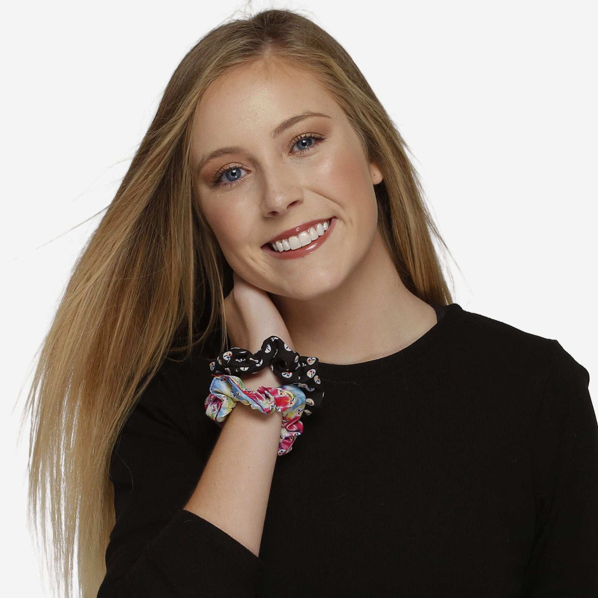 - Three-pack of hair scrunchies with unique designs, because three scrunchies are better than one