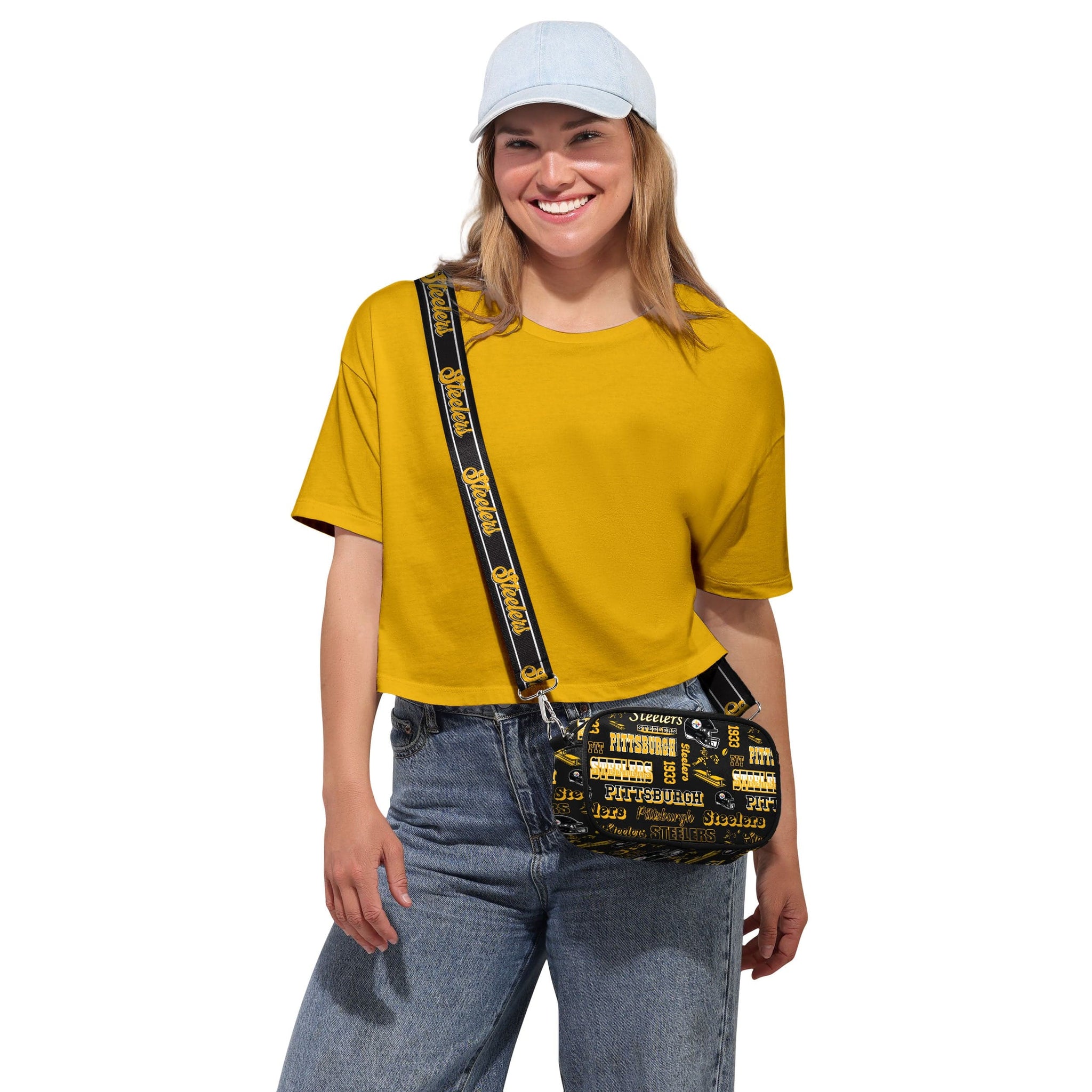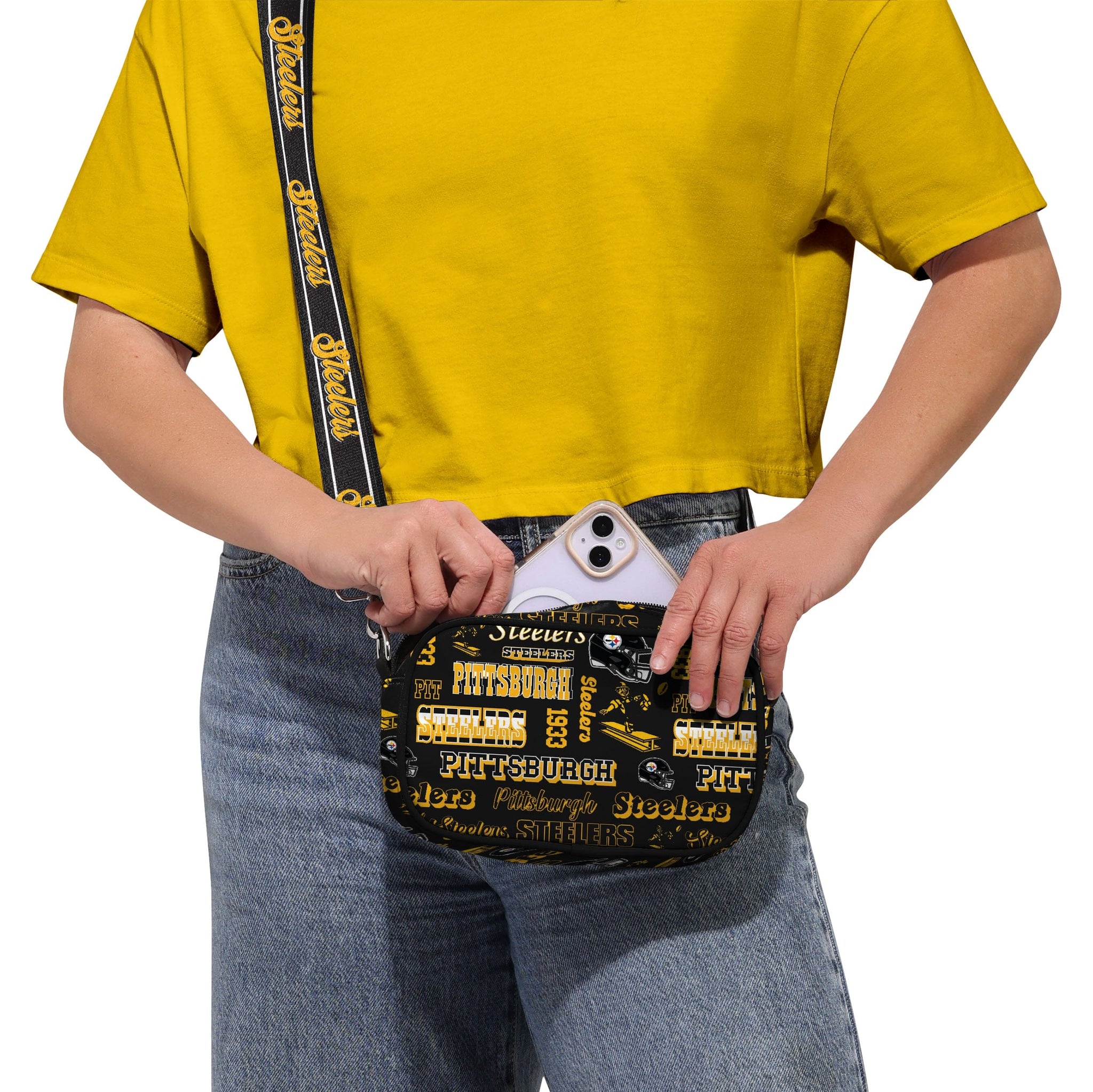Over your shoulder and off to the game! Vintage vibes meet modern utility with the Pittsburgh Steelers Repeat Retro Print Nylon Crossbody Bag.