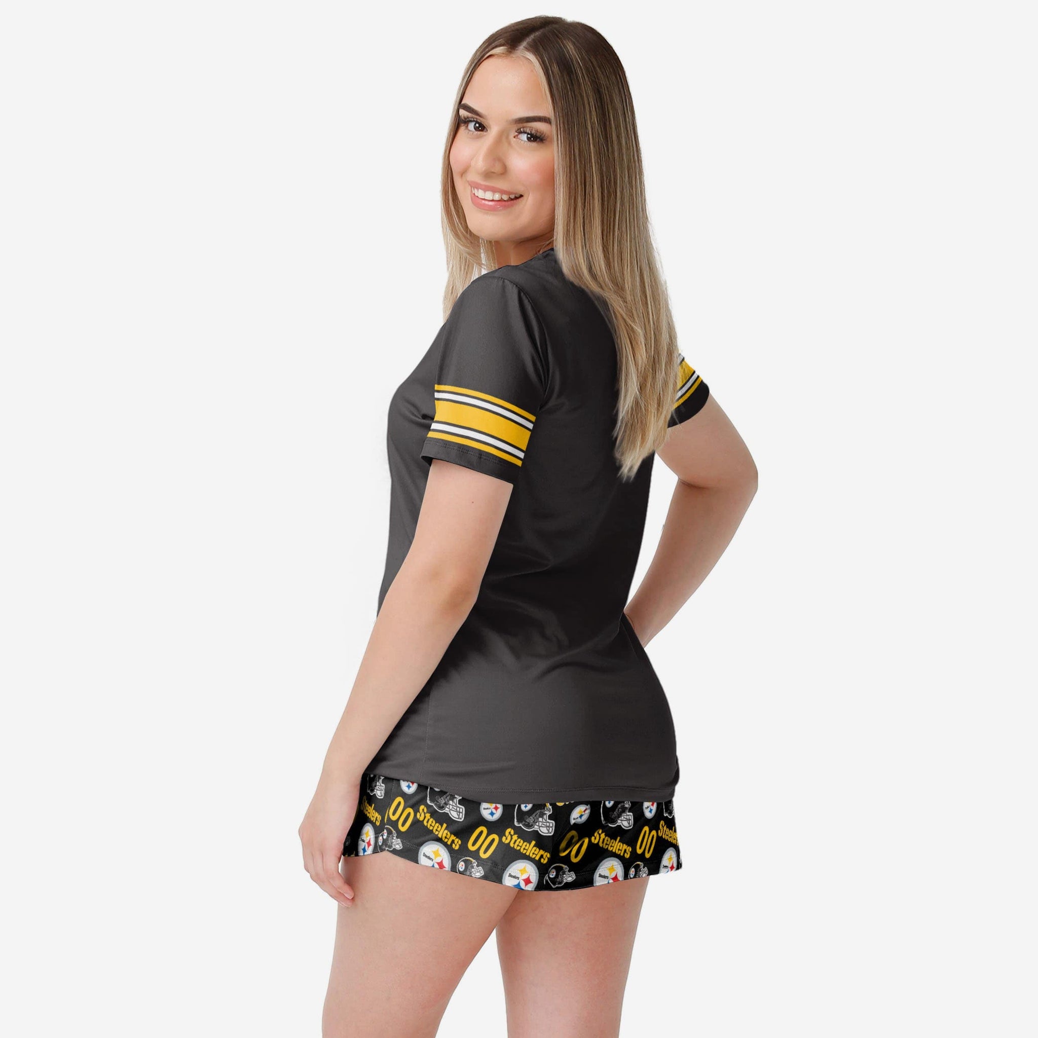 Get some matching family pajamas and dress to impress this holiday season! You won't want to miss these women's team pajamas! These women's PJ's are comfortable and show off your team spirit in the form of some sweet women's jammies. Introducing the Pittsburgh Steelers Women's Gameday Ready Pajama Set! Don't forget to take your holiday photo with the whole family wearing matching Christmas pajamas!
