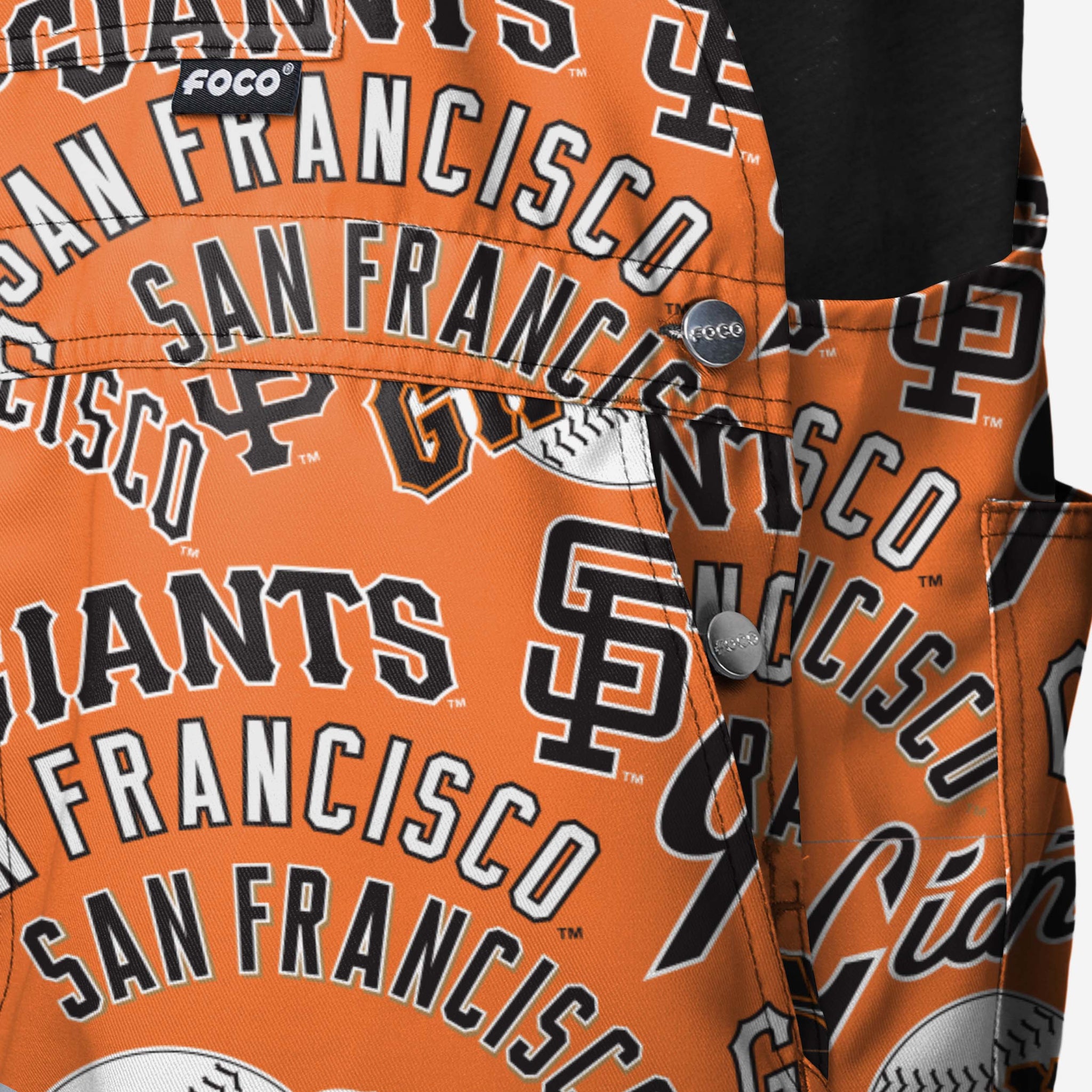 • All-over team-colored design: These shortalls are covered in the official San Francisco Giants colors, so you can show your team spirit with pride.