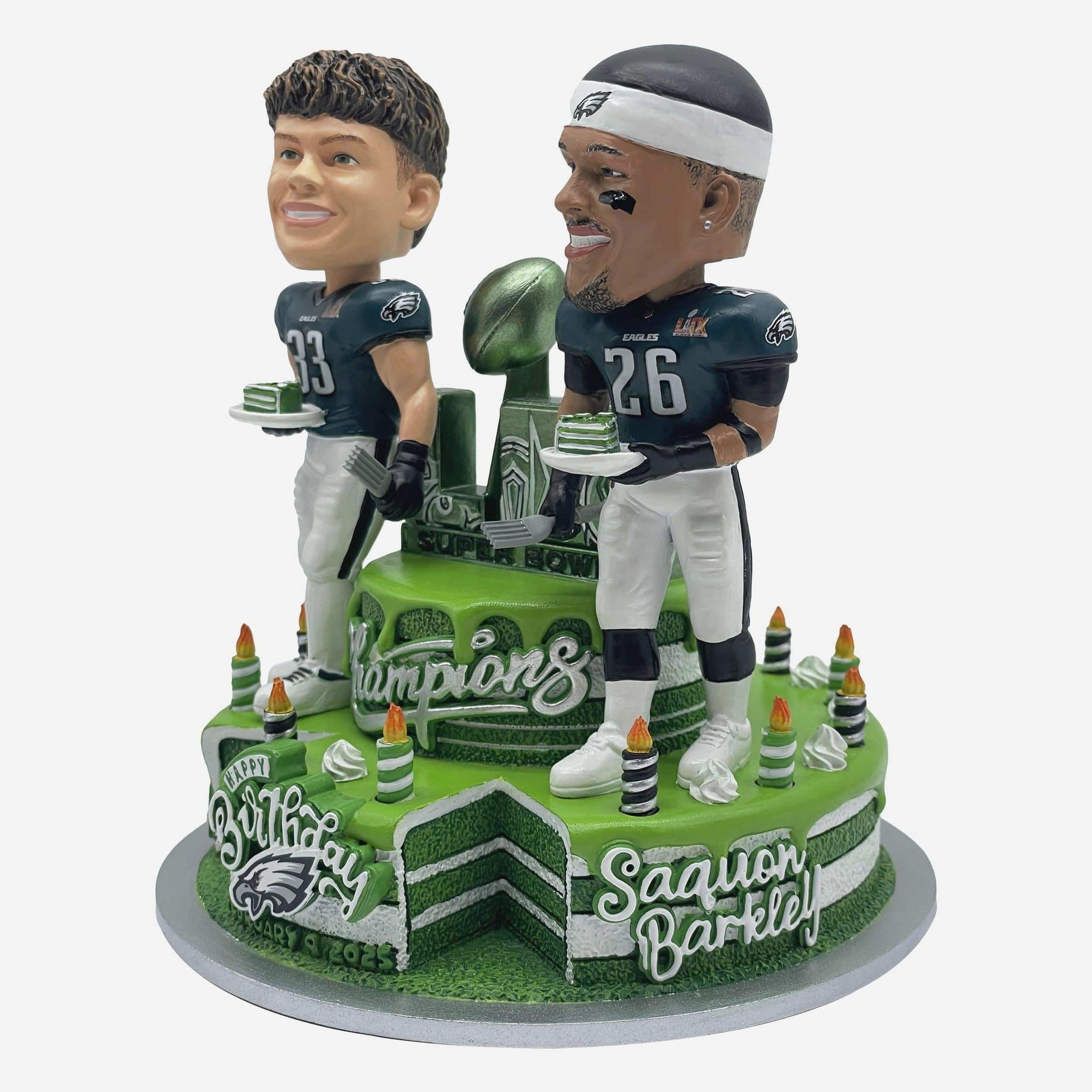 It’s a Super Bowl birthday bash in the Bayou! Grab a slice of the celebration with this Saquon Barkley & Cooper DeJean Philadelphia Eagles Super Bowl LIX Champions Birthday Dual Bobblehead.