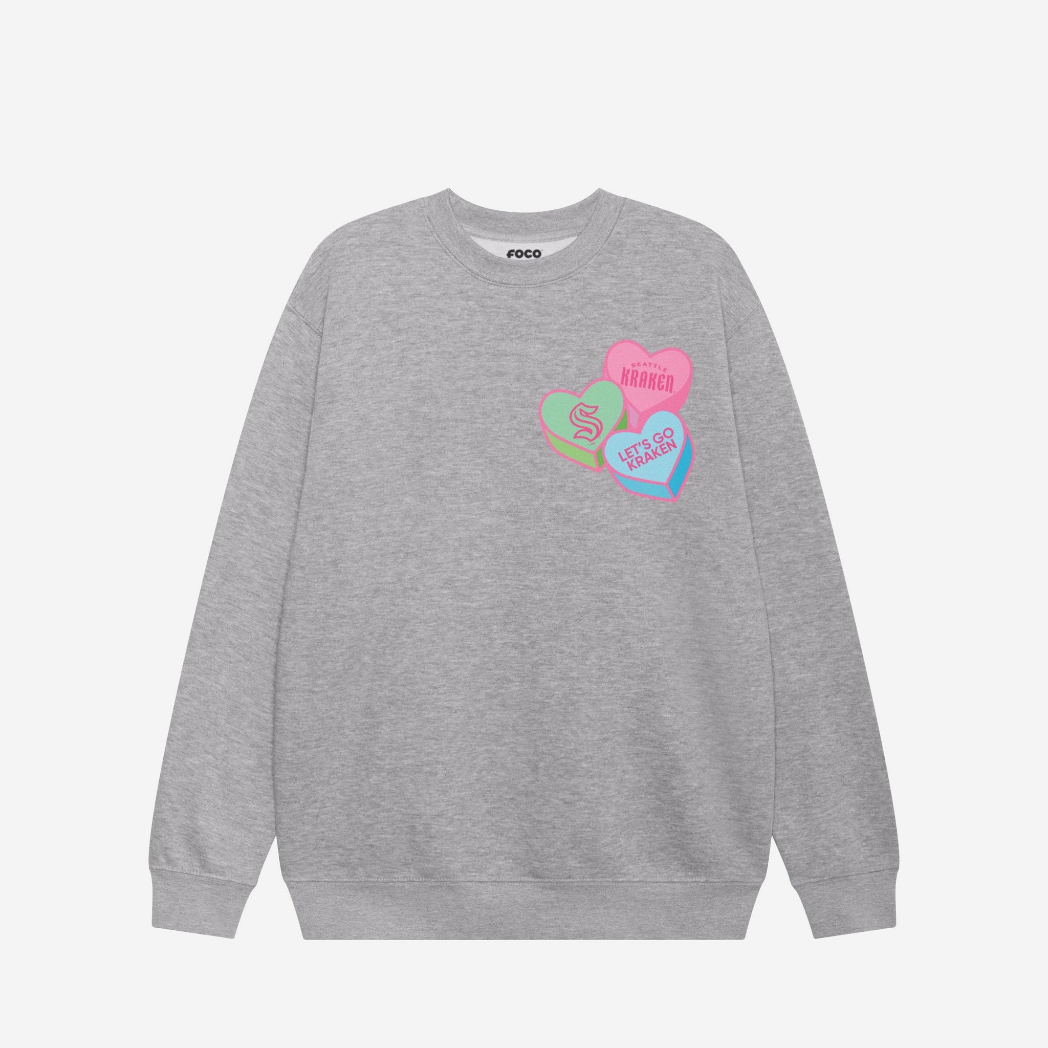 Seattle Kraken Candy Heart Crew Neck Sweatshirt FOCO Athletic Heather S - FOCO.com