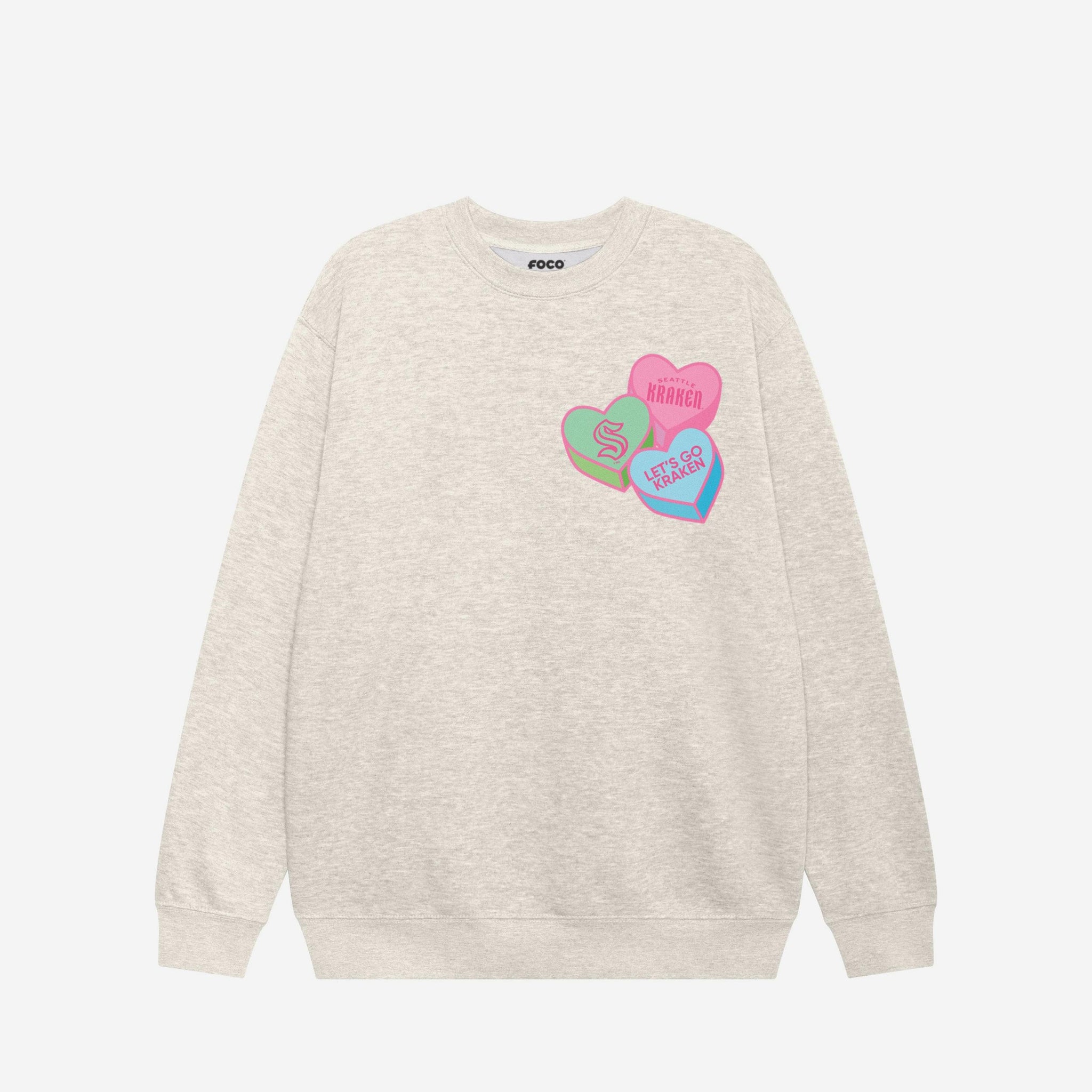 Seattle Kraken Candy Heart Crew Neck Sweatshirt FOCO Oatmeal Heather S - FOCO.com
