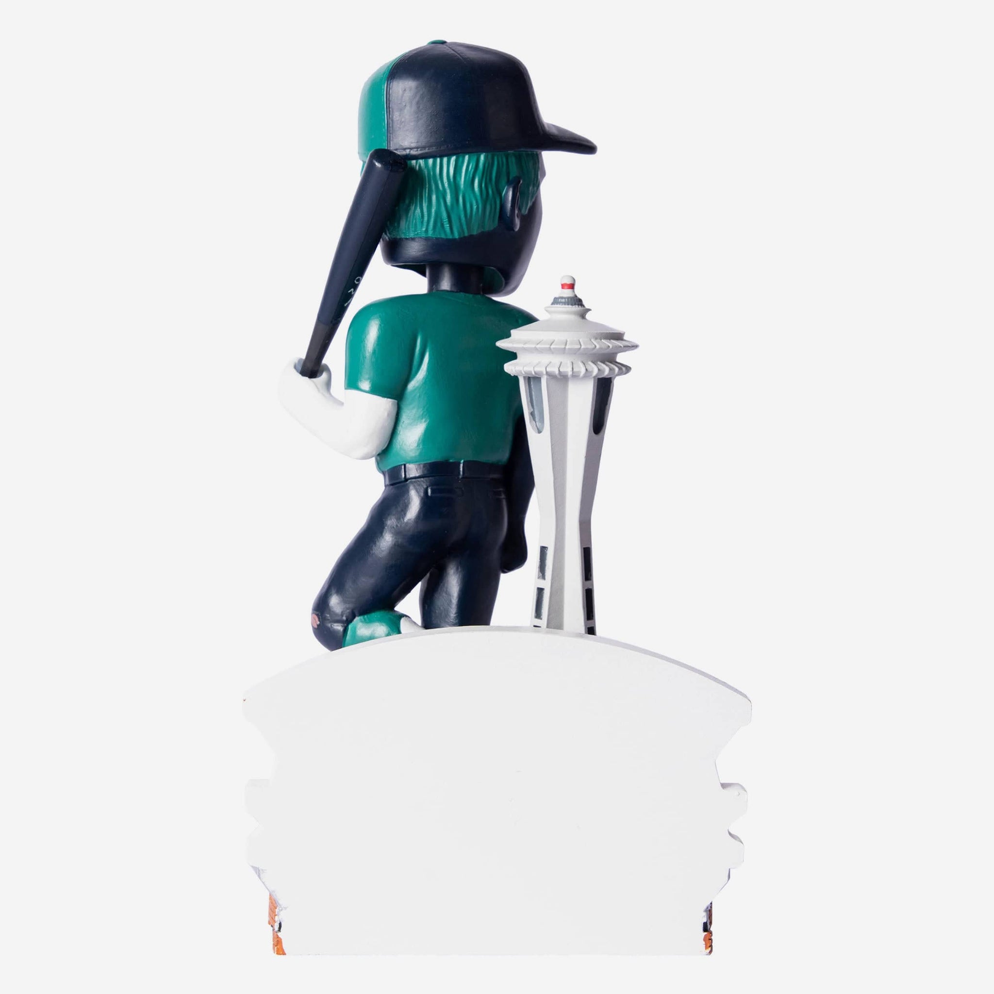 - Portrays figure wearing team-colored uniform, holding a baseball bat, and leaning against the Space Needle to bring the essence of The Emerald City to your fancave