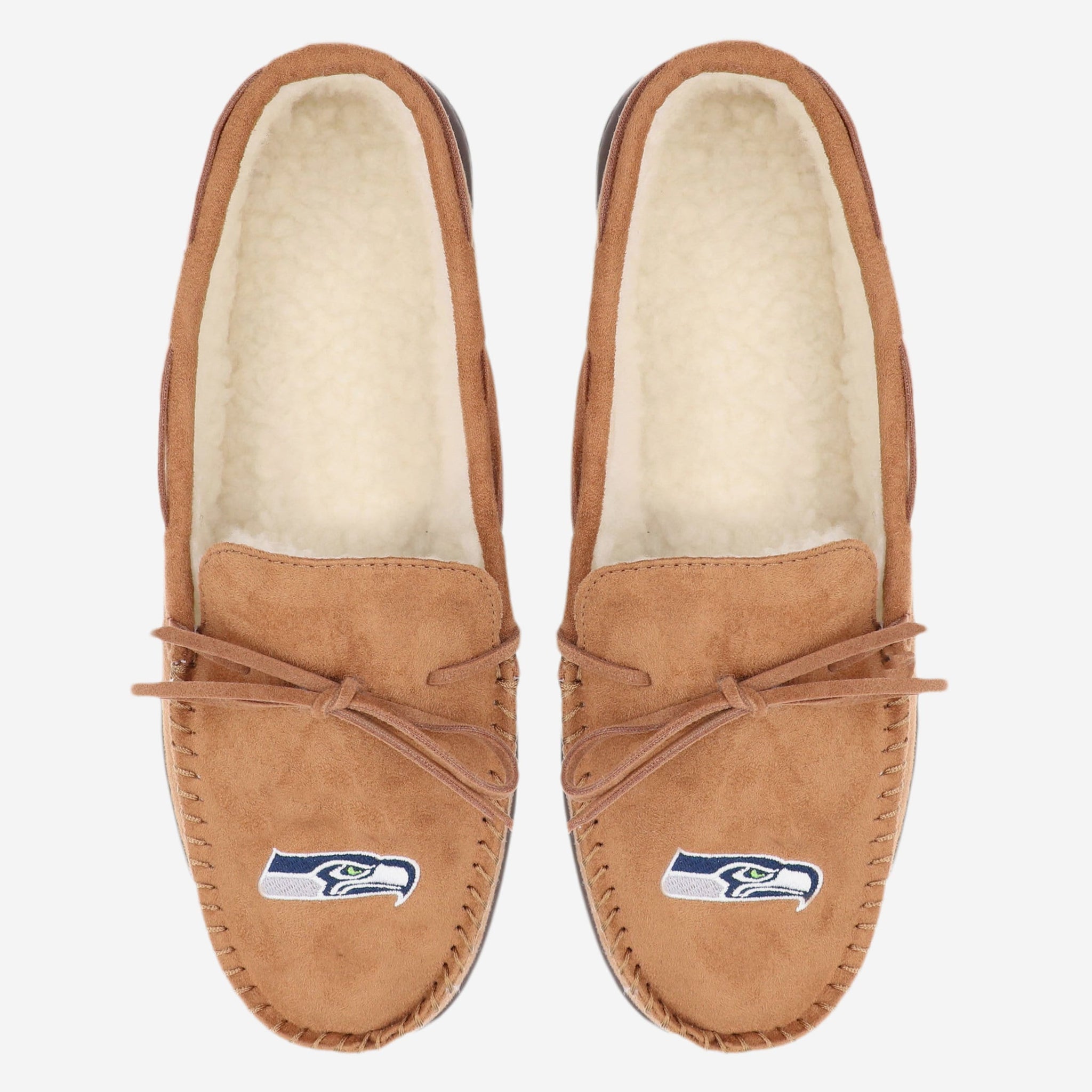 Moccasins? Cool. Comfy slippers? Also cool. Seattle Seahawks Moccasin Slippers? Mind = blown. The future is now, friend.