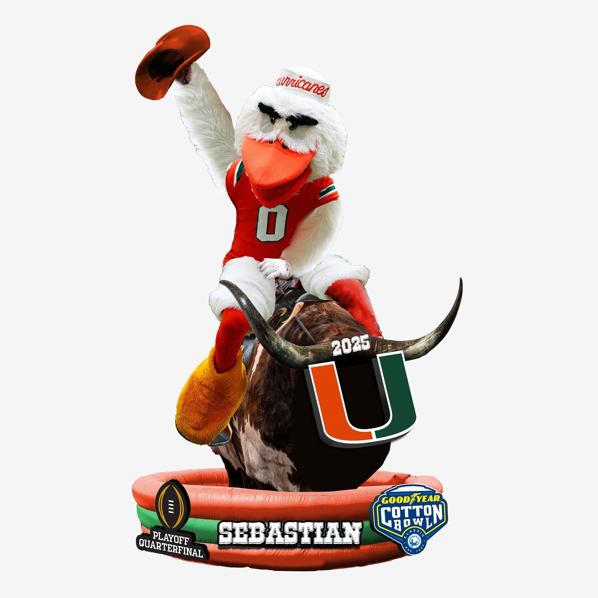 Celebrate the biggest win of the season with the biggest bobble of the postseason! Put your championship moment on display with the Sebastian the Ibis Miami Hurricanes Cotton Bowl Winner Mascot Bobblehead.