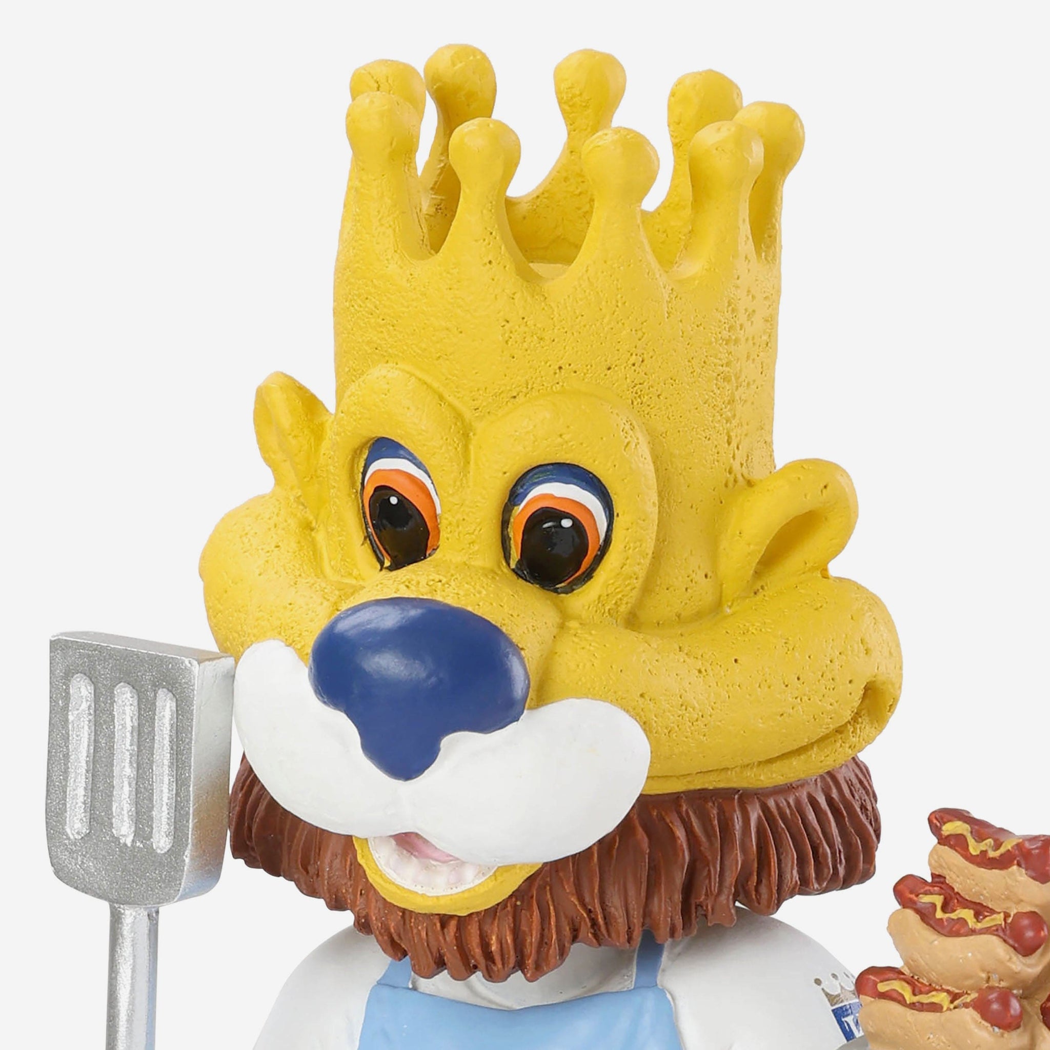 • Portrays mascot posing in a team-colored apron while holding a spatula and a plate of hot dogs, so we hope you're hungry