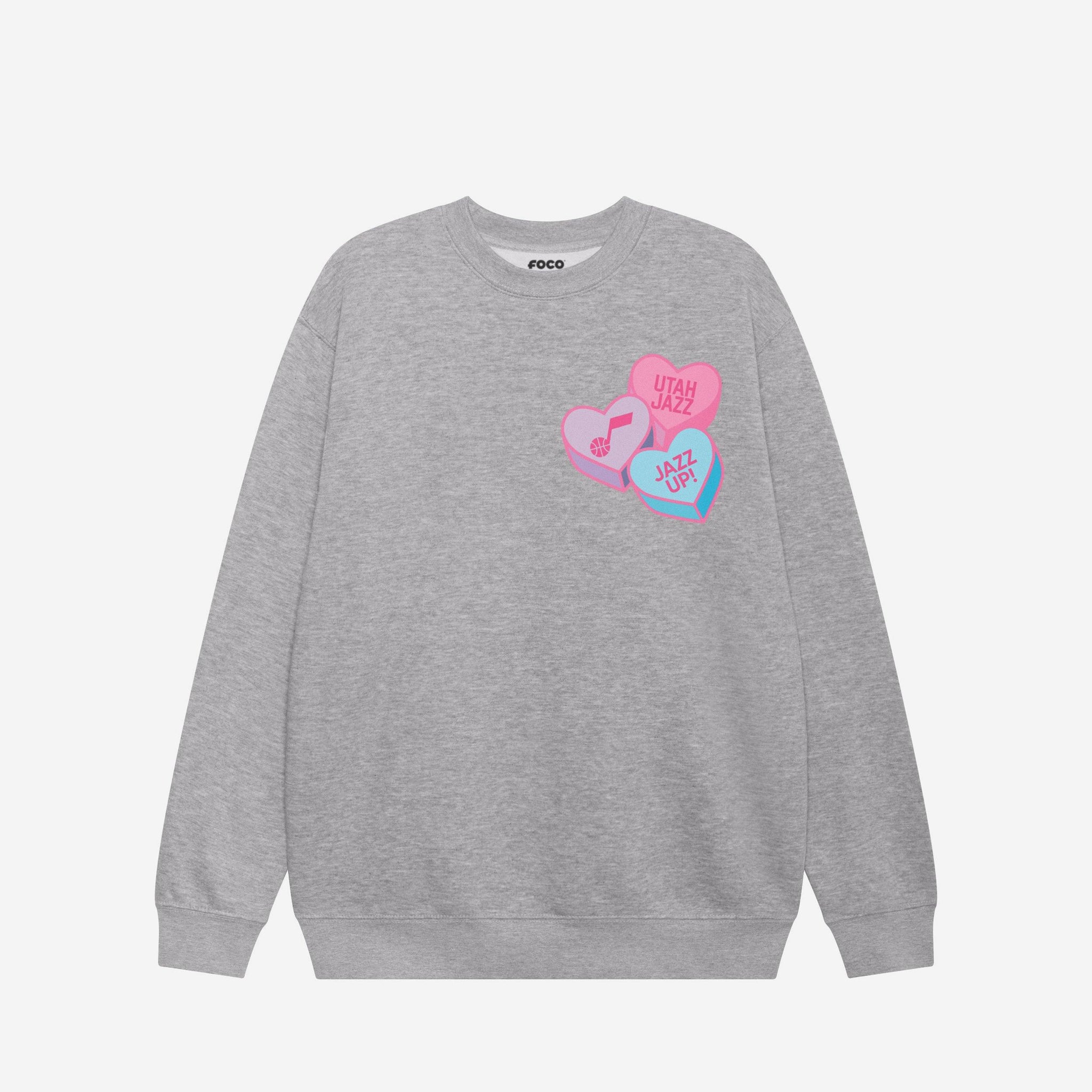 Utah Jazz Candy Heart Crew Neck Sweatshirt FOCO Athletic Heather S - FOCO.com