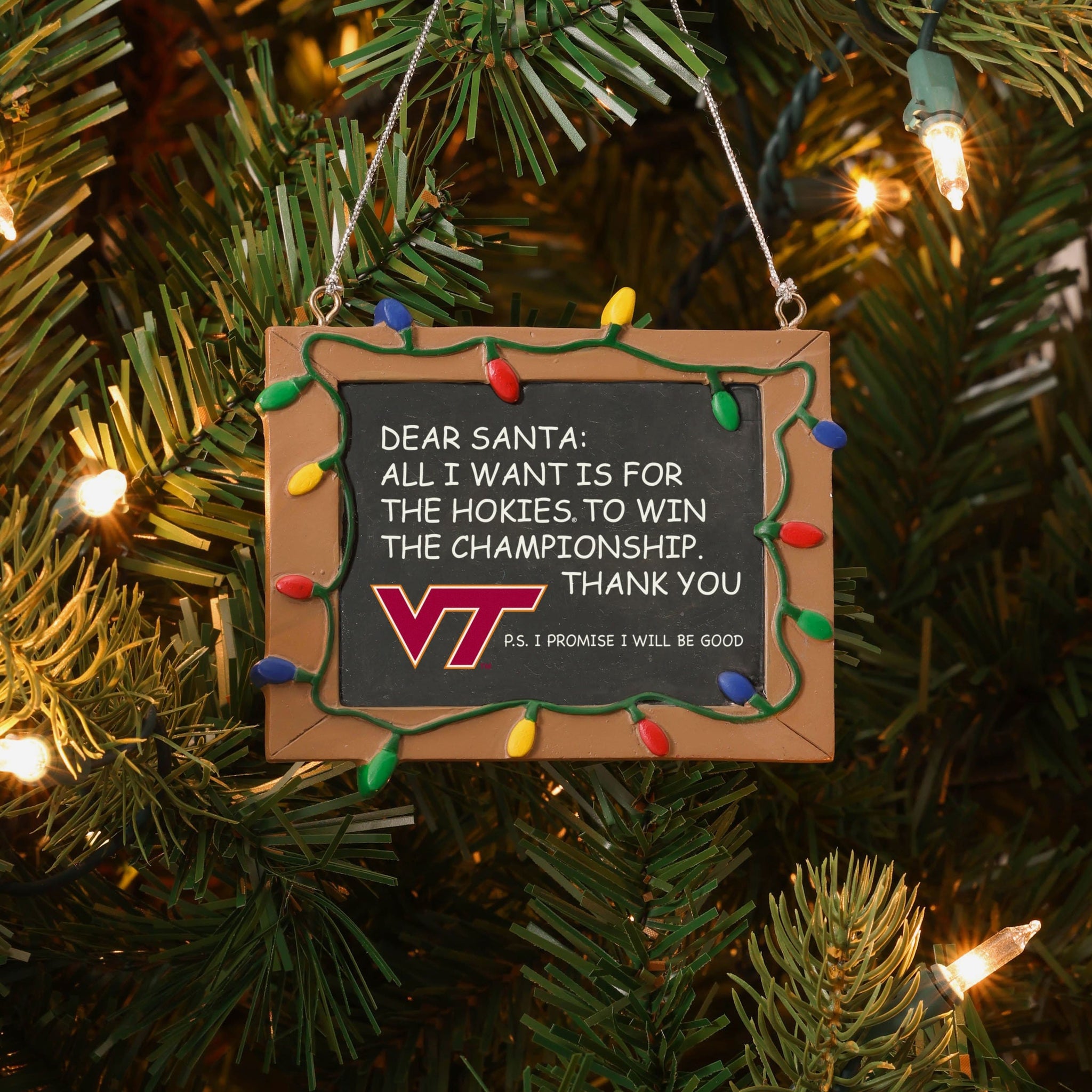 So, you made your list and sent it to jolly ol' Fanta Claus, asking him for a championship. But sometimes letters can get lost in the mail. Just in case, put this Virginia Tech Hokies Chalkboard Sign Ornament on your tree to let him know how good you've been this year, and that all you want for the holidays is a trophy.