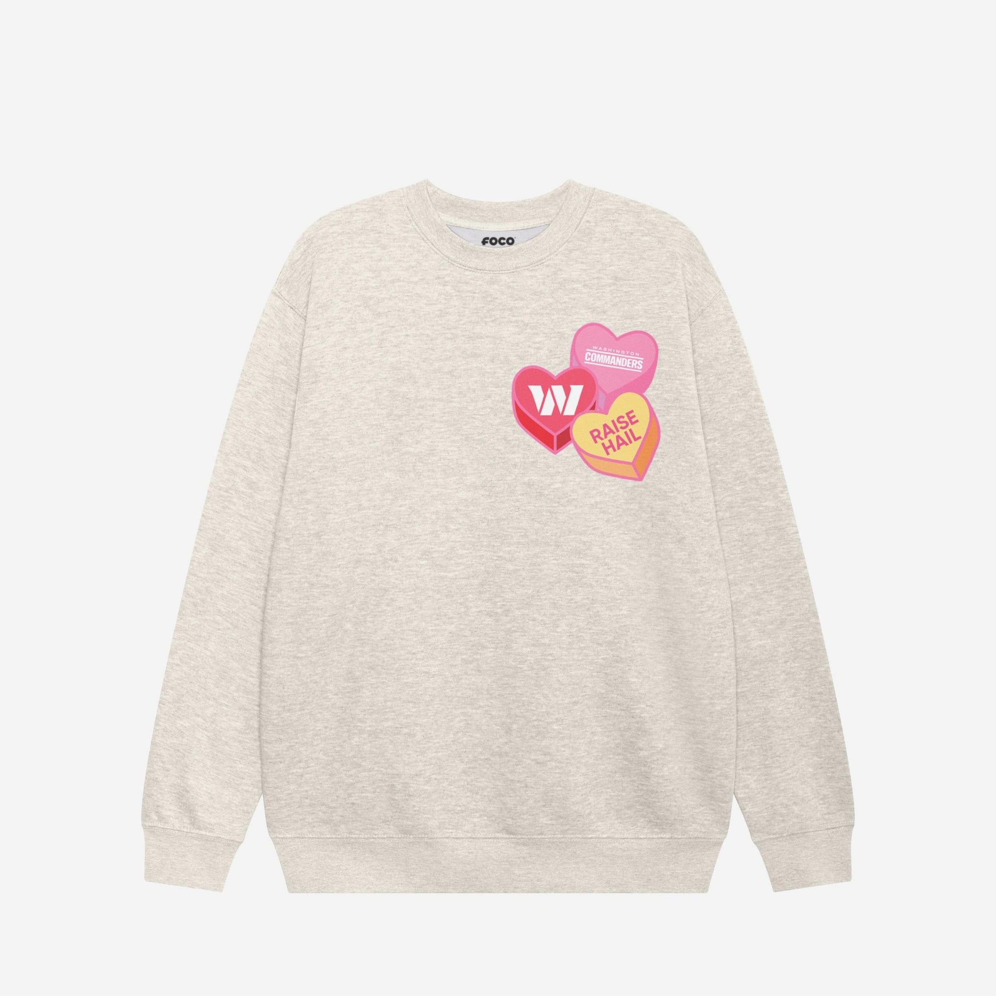 Washington Commanders Candy Heart Crew Neck Sweatshirt FOCO Oatmeal Heather S - FOCO.com