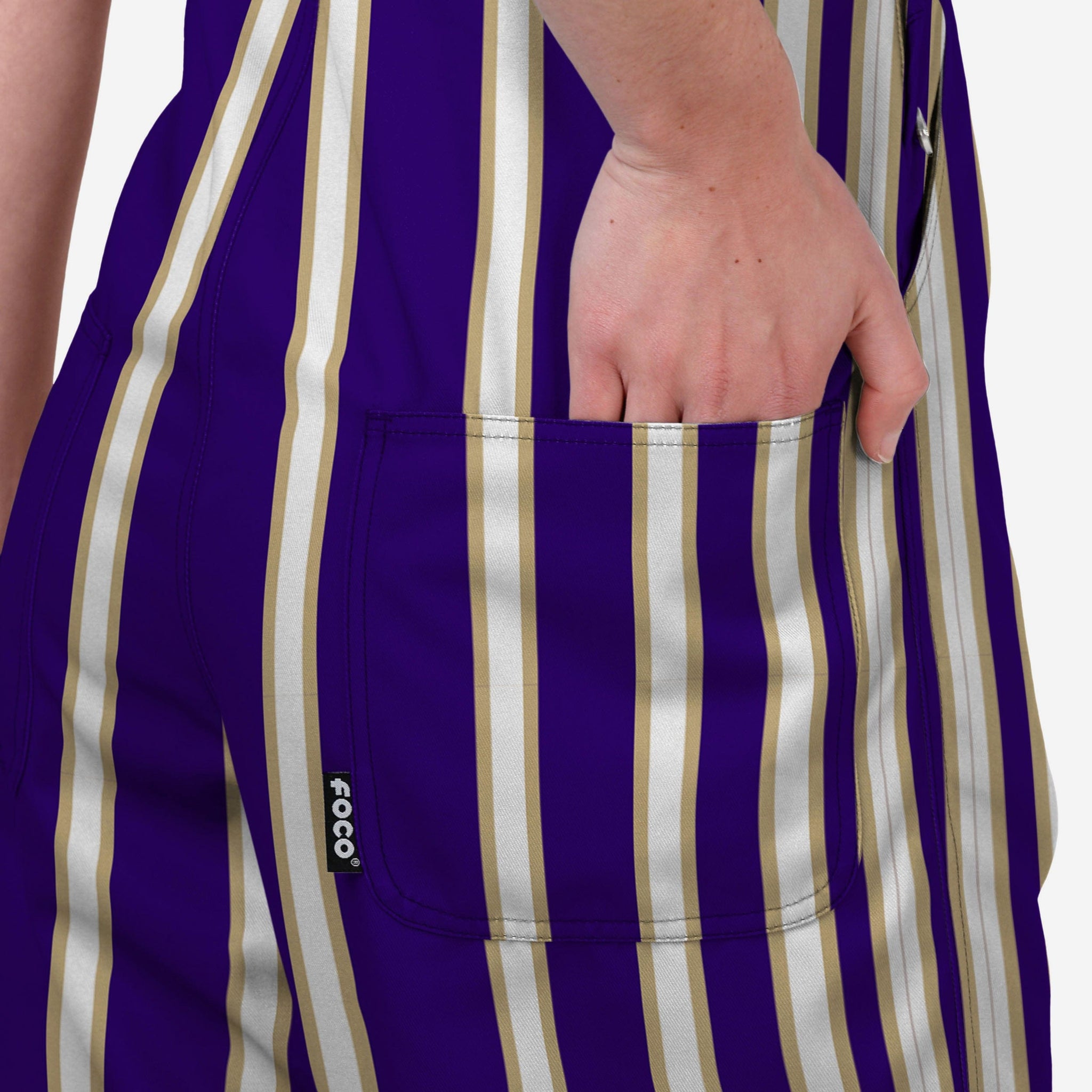 Show your team spirit in these stylish and comfortable Washington Huskies Womens Sideline Spirit Overalls. With their all-over team-colored design and bold team logo displays, these Overalls are the perfect way to show your support for the Washington Huskies while showing off some striped style that will have you ready for everything from campus strolls to sideline cheers.