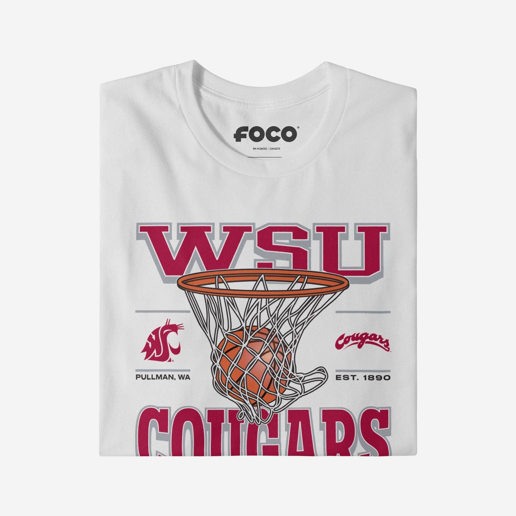 This top features a design that showcases your all-important team colors, a team logo display, a team wordmark name display, year of team establishment, and a basketball swishing through a net display meaning this t-shirt will prove your unmatched dedication to the Washington State Cougars when you're at the game or watching at home. In other words, this graphic tee is about to be your new favorite teammate.